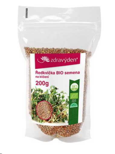Složení: Semena ředkve seté - ředkvičky BIO (Raphanus sativus, Daikon)