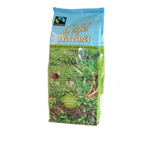 Bio káva s patřičným obsahem kofeinu balená v ochranné atmosféře do plastového obalu bez hliníkové vrstvy. Obchodováno dle pravidel spravedlivého obchodu Fairtrade.